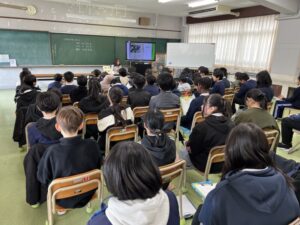 2月20日、湯来南小学校で平和学習が行われ、5・6年生の生徒さん50名がお話を聞...