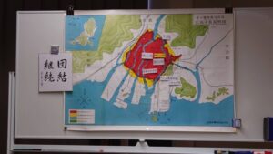 ほとんどの方が県外から来られていたので、原爆被災地図に爆心地や堀川町・牛田町・幟町小学校・国泰寺中学校・広島商学校などの位置を示し、傍らには1958年5月5日の「原爆の子の像建立時の写真」を飾ってお話をしてくださったそうです。