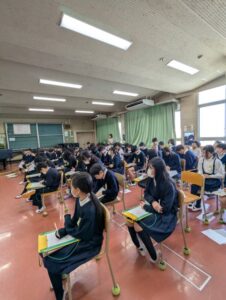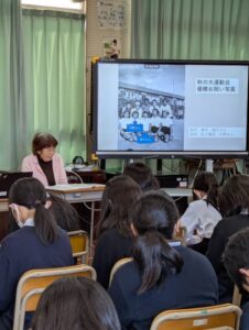 『私は今まで、佐々木禎子さんのことは知っていたけど、川野さんのことはあまり知りませんでした。今日は、禎子さんの昔について教えてもらいましたが、私が思っているのと全然違いました。知っていたことは、まず、禎子さんは小さい頃に被曝して、6年生で白血病になって、死んでしまったという感じでした。しかし今日聞いたことは、禎子さんの昔の学校生活や、周りの人のことなど、色々なことを知れました。秋の大運動会のことはすごかったです。これが団結力なんだと思いました。中でも一番心に残ったことは、募金活動です。なぜなら、私がもし友達だったら、募金活動まではしなかっただろうし、思いつかなかったと思います。なので、友達は勇気があってすごいと思いました。また、「これは僕たちの叫びです。これは私たちの祈りです。世界に平和を築くための」というところも印象的でした。今までその言葉は知っていたけど、禎子さんのことや友達のことを聞いた後に聞くと、なぜか違うように感じました。とにかく今日は、禎子さんの昔のことを知れて、いい機会になったと思います。これからは、もっと興味を持って、調べたりして、伝えることもやっていきたいと思いました。禎子さんたちのことを知れて良かったです。』