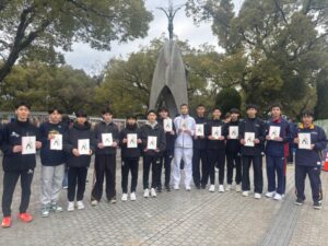 また、平和を祈るバスケットボールの試合を行い、いつもの試合とは違う気持ちでプレーすることができました。仲間や相手チームと一緒にバスケットボールができるのは、平和な毎日があるからこそだと実感しました。スポーツを楽しめること自体が、とても幸せなことだと感じました。