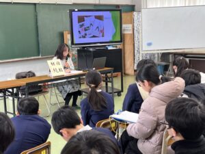 2月20日、湯来南小学校で平和学習が行われ、5・6年生の生徒さん50名がお話を聞かれました。