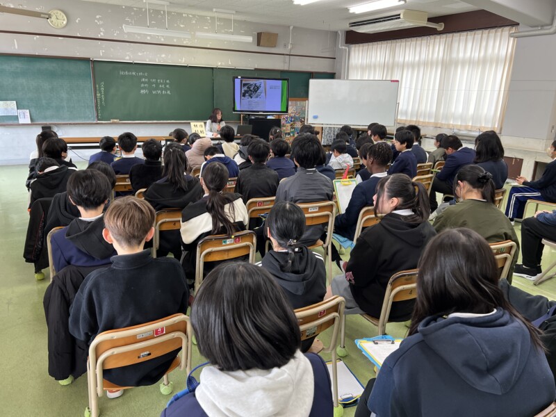 2月20日、湯来南小学校で平和学習が行われ、5・6年生の生徒さん50名がお話を聞かれました。