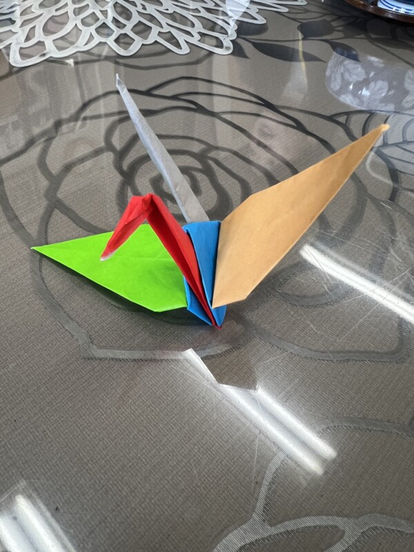 様々な大きさの折り鶴や、部分部分で色が違う折り鶴など、手の込み具合に驚きました。